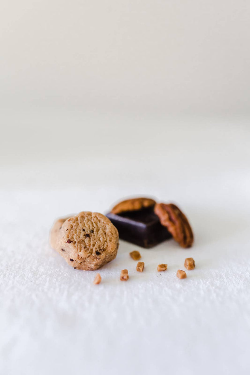 Everything you need in just one bite. Rich, unsweetened dark chocolate, buttery toffee and crunchy pecans nestled in our slightly crisper classic shortbread.