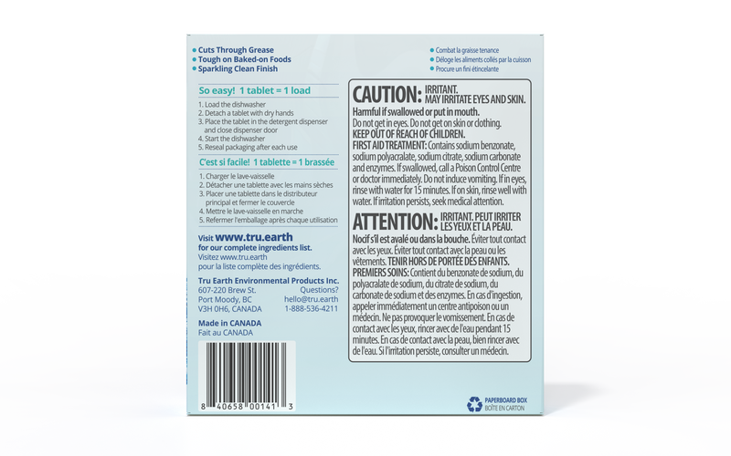 Cutting Edge Technology: Tru Earth uses our own formula to create Tru Earth Dishwasher Detergent Tablets. This formula is laboratory tested as well as tested in actual dishwashing machines.