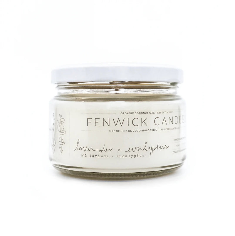 Fenwick Candle inspires the wellness of candlelight by crafting healthier candles; balancing aromatherapy and ecology. Handpoured in Toronto. Burn 2-3 hours at a time for optimal performance. Organic, naturally sustainable, non-GMO, cruelty-free, petroleum-free, lead-free, compostable, recyclable, safe heat resistant jars.