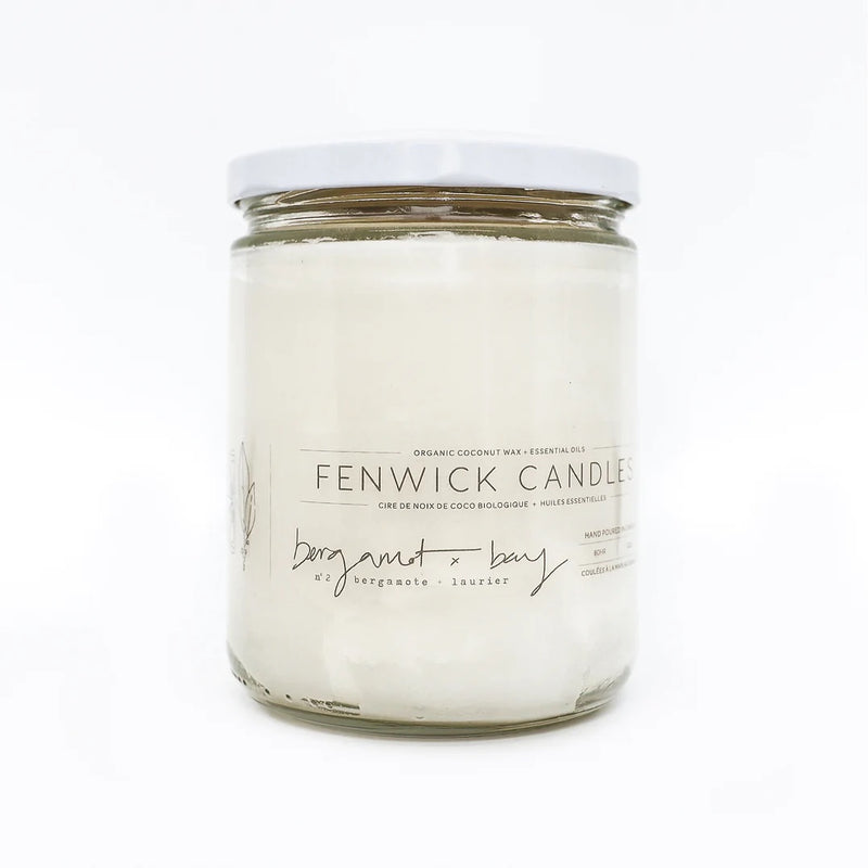 Fenwick Candle inspires the wellness of candlelight by crafting healthier candles; balancing aromatherapy and ecology. Handpoured in Toronto. Burn 2-3 hours at a time for optimal performance. Organic, naturally sustainable, non-GMO, cruelty-free, petroleum-free, lead-free, compostable, recyclable, safe heat resistant jars.