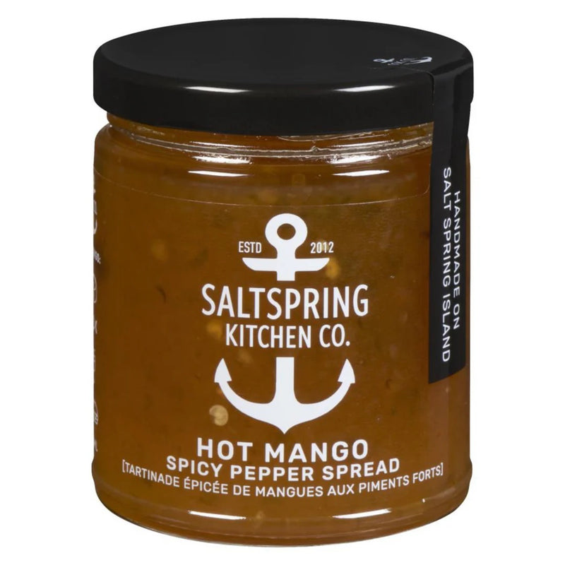 One of our best-selling jars, Hot Mango is a not-too-sweet spread that brings habanero and jalapeño peppers to the party to spice things up. Pairs with fresh Chèvre, Brie, Camembert, Gorgonzola, seafood, lamb, and pork. We love it in this Spicy Mango Chicken Bowl. Beautiful in cocktails and sparkling drinks.