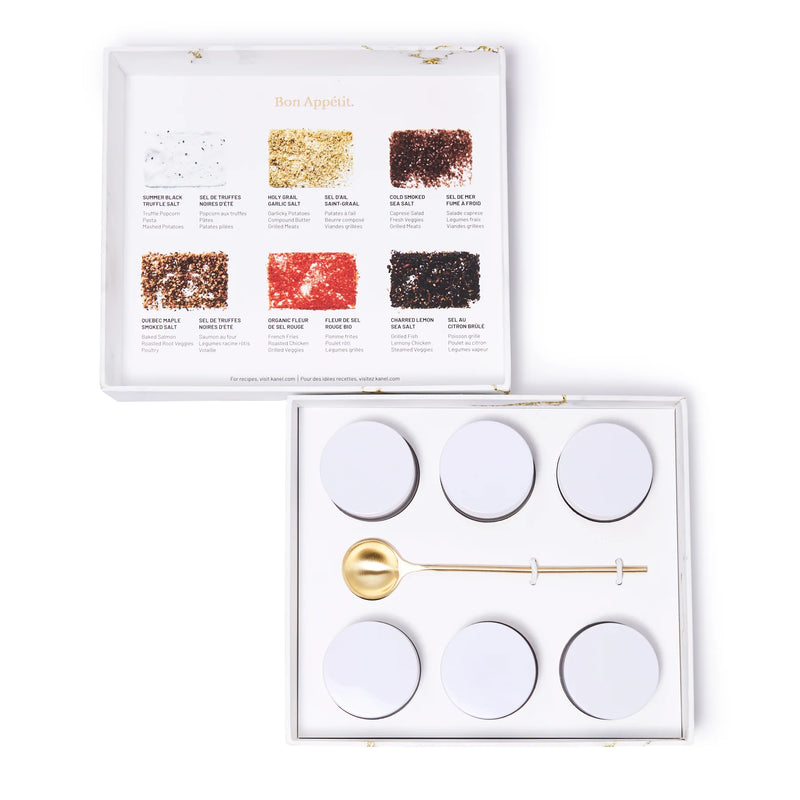 A discovery box for the gourmet, the curious, and the salt-obsessed. Dive into six of our most exquisite sea salt blends — each selected to elevate your cooking with bold, unforgettable flavour. With mouthwatering smoked maple, rich and earthy truffle, brightly layered citrus and more, this curated collection brings depth and versatility to every dish. Enjoy thoughtful pairing suggestions for each blend, plus a handcrafted brass seasoning spoon — the perfect finishing touch for your table, and your tastebuds.