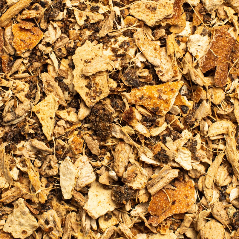 Ingredients: Dried Ginger Pieces, Upcycled Orange Peel Pieces, Organic Lemon Pieces.
