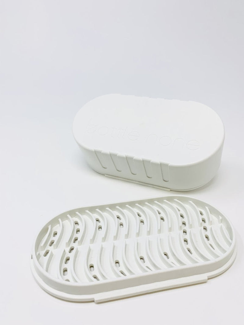 The soap dish fits within the travel case! Use the soap dish and lid day to day. To maximize the life of the bar store on the soap dish and just use the travel case when travelling.
